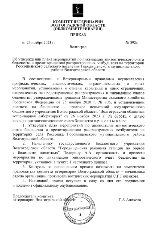 Теперь в селе проводятся мероприятия, чтобы не допустить распространение бешенства. Эпизоотическим очагом обозначена территория на улице Рабочая. Теперь ветеринарам предстоит делать обход домов и искать не привитых животных. Также в населенном пункте поймают бездомных животных, которых впоследствии изолируют и вакцинируют.