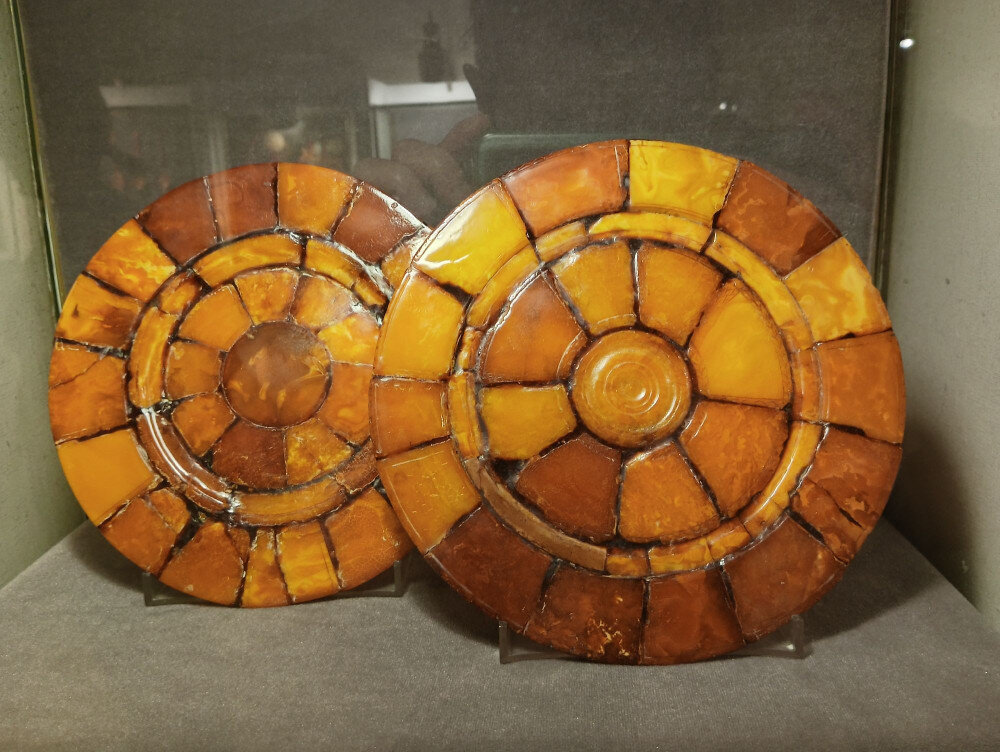 Здоровья нам всем, счастья и пусть сбудутся все хорошие мечты! А я буду писать про любимый янтарный край и постараюсь показать все самое интересное и красивое из Калининградской области! Сегодня - краса и гордость Калининграда - Янтарь! Эти фото сделаны в октябре 2023 года. Когда не знаешь, куда идти в Калининграде, конечно идем в музей янтаря. Хотя были там все уже по 2-3-4 раза, но все равно, там настроение гарантировано улучшается, потому что... В этот раз просто бездумно шатались, любовались самыми заветными кусочками и у меня в голове был план (а в кармане фига билеты в Питер), поэтому я хотела посмотреть ещё раз то, что связано с Янтарной комнатой. Янтарь прекрасен! На него можно любоваться бесконечно, гладить и облизывать :) Очень я понимаю жителей Африки, которые в обалдении готовы были отдать за такие бусы что угодно. Да, на самом деле слева это «африканские» бусы. Их производили на предприятии «Штантин и Беккер» из паль