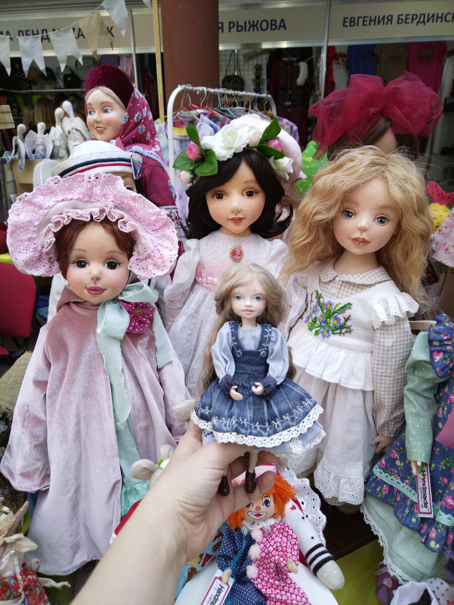 Есть в моей коллекции и такие кукложители. Я долгое время лишь любовалась авторскими куклами, Селить у себя не собиралась, ну ведь с ними не поиграешь, а я не из тех кто готов просто любоваться. Да и цены останавливали. А потом мы стали регулярно ездить на выставку-ярмарку, которая проходит у нас в городе. И вот на такой выставке я разговорилась с мастером, а потом уехала домой с очаровательной малышкой, Асенькой. Ася выполнена в смешанной технике, у нее текстильное тело на каркасе и головка, ручки и ножки из запекаемой пластики. Одежда вся съёмная, волосики из козочки. Такая домашняя, теплая и уютная малышка. Быстро освоилась в доме и подружилась с обитателями моих полочек. Эшли тут же взяла Асеньку под опеку. Ася обожает книги, редко можно ее увидеть без бумажной спутницы, а еще девочка увлекается конным спортом. Какое-то время спустя, на очередной ярмарке у любимого мастера я купила подружку для Аси, такая летняя нежная Леля. Живут теперь на одной полочке и частенько устраивают