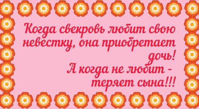 Взяли в семью невестку. Свекровь сказала, чтобы та наварила капусты. Невестка нашинковала полную кастрюлю, поставила на огонь. Когда сняла, увидела, что капусты и половины не осталось. Боясь подозрения, что это она съела, невестка горько плакала. Увидела это свекровь и стала успокаивать: — Так всегда бывает, потому что уваривается. На следующий день невестка сварила на завтрак пять яиц. Не утерпела и два съела. — А где остальные? — удивилась свекровь. — Уварились, мама, — нашлась невестка. *** Приходит невестка к свекрови в гости. Свекровь очень рада и предлагает пообедать, заглядывает в холодильник и говорит: – Света, ливерную колбаску будешь? – Да нет, спасибо. – Тю, и моя кошка не хочет. *** У меня сложились очень тёплые дружеские отношения с мамой моего мужа. Мы часто вместе гуляем или ходим в кино. На днях ехали на дачу, и в пробке со мной пытался познакомиться мужчина. Я его отшила, разумеется, а она мне: «Ну и чего ты? Приятный мужчина же и состоятельный, видно. Познакомилась б