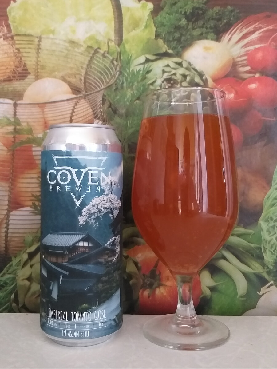 Пришло время для очередного обзора крафтового пива от COVEN BREWERY. Крафтовая пивоварня расположена в подмосковных Мытищах и варит пиво с 2019 года. Название переводится с английского как "шабаш ведьм". За короткий промежуток времени пивоварне удалось добиться больших успехов в пивоварении и стать одной из значимых крафтовых пивоварен в нашей стране. В линейке у пивоварни самые разнообразные сорта пива, на любой вкус. Большое количество экспериментальных сортов. Основатель пивоварни Julia Juliasferato в прошлом популярный пивной блогер в Инстаграм. На моём канале уже вышло несколько обзоров, посвящённых пиву этой крафтовой пивоварни. Вот ссылка для просмотра этих материалов. Перед нами имперский томатный гозе в азиатском стиле. "Utsukushiki Hitobito No Uta" Пивной напиток нефильтрованный непастеризованный "Утсукушики хитобито но юта" Состав: вода подготовленная, солод пивоваренный (пшеничный, ячменный), хмелепродукты, томатная паста, чеснок, дайкон, лук, сок яблока, моркови, лайма, па