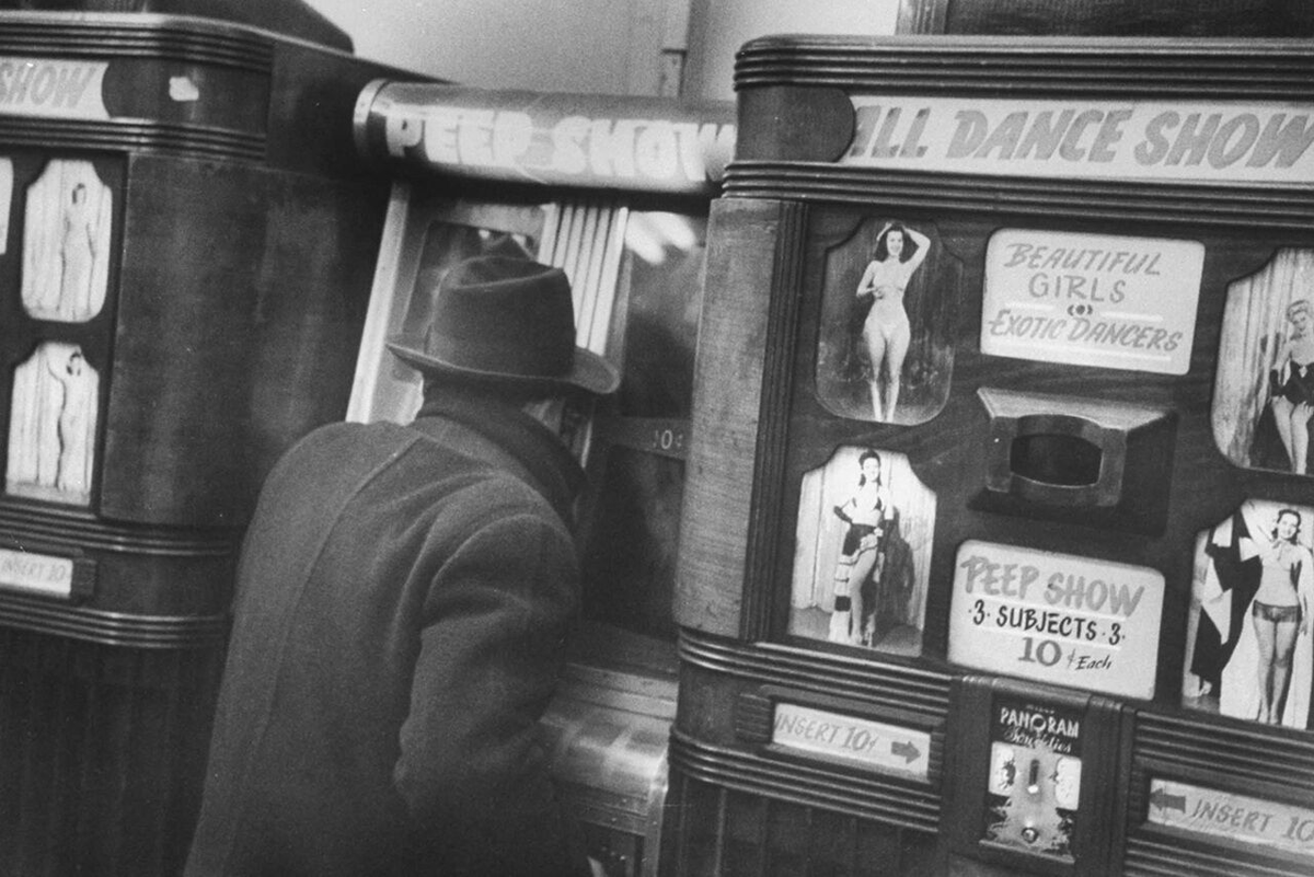 Почти в то же время, в 1884 году, изобретатели Уильям Диксон и Герман Каслер создали уникальную машину — одноместный киноавтомат. Мутоскоп мог показывать короткий фильм через окуляр для единственного зрителя и легко приспосабливался для использования с монетоприемником. Этот кинопроектор стоил значительно меньше обычного, что обеспечило ему великий успех в индустрии кино для взрослых. Стандартная комплектация включала картридж, в котором быстро сменялись 850 фотоснимков, создавая одну минуту фильма. Идея была благородной: использовать мутоскоп для показа важных, рели