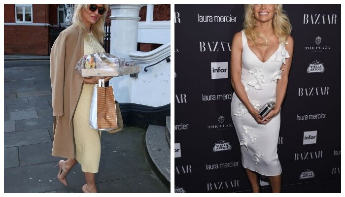 Знаменитая актриса и фотомодель Памела Андерсон — главная звезда нашей статьи. Ниже вашему вниманию представлены лучшие образы шикарной Памелы Андерсон, которые не могут остаться без внимания. Длинное платье с воздушными воланами нежно-персикового оттенка гармонично перекликается с белоснежными волосами знаменитости. Акцент на платье в виде пояса в тон наряда выигрышно акцентирует внимание на тонкой и изящной талии фотомодели. Божественная женщина с идеальной фигурой Памела Андерсон выигрышно смотрится в стильном асимметричном платье, украшенном трендовым цветочным принтом. Минималистичное белое платье-футляр с пуговицами визуально стройнит и делает внешний вид дорогим и роскошным. Мировая знаменитость предпочитает облачаться в элегантные и женственные наряды, миди асимметричное платье благородного цвета «шампань» яркое этому доказательство. Какой бы вариант наряды не выбирала для себя очаровательная Памела Андерсон он всегда уместно подчеркивает привлекательные достоинства ее прелестн