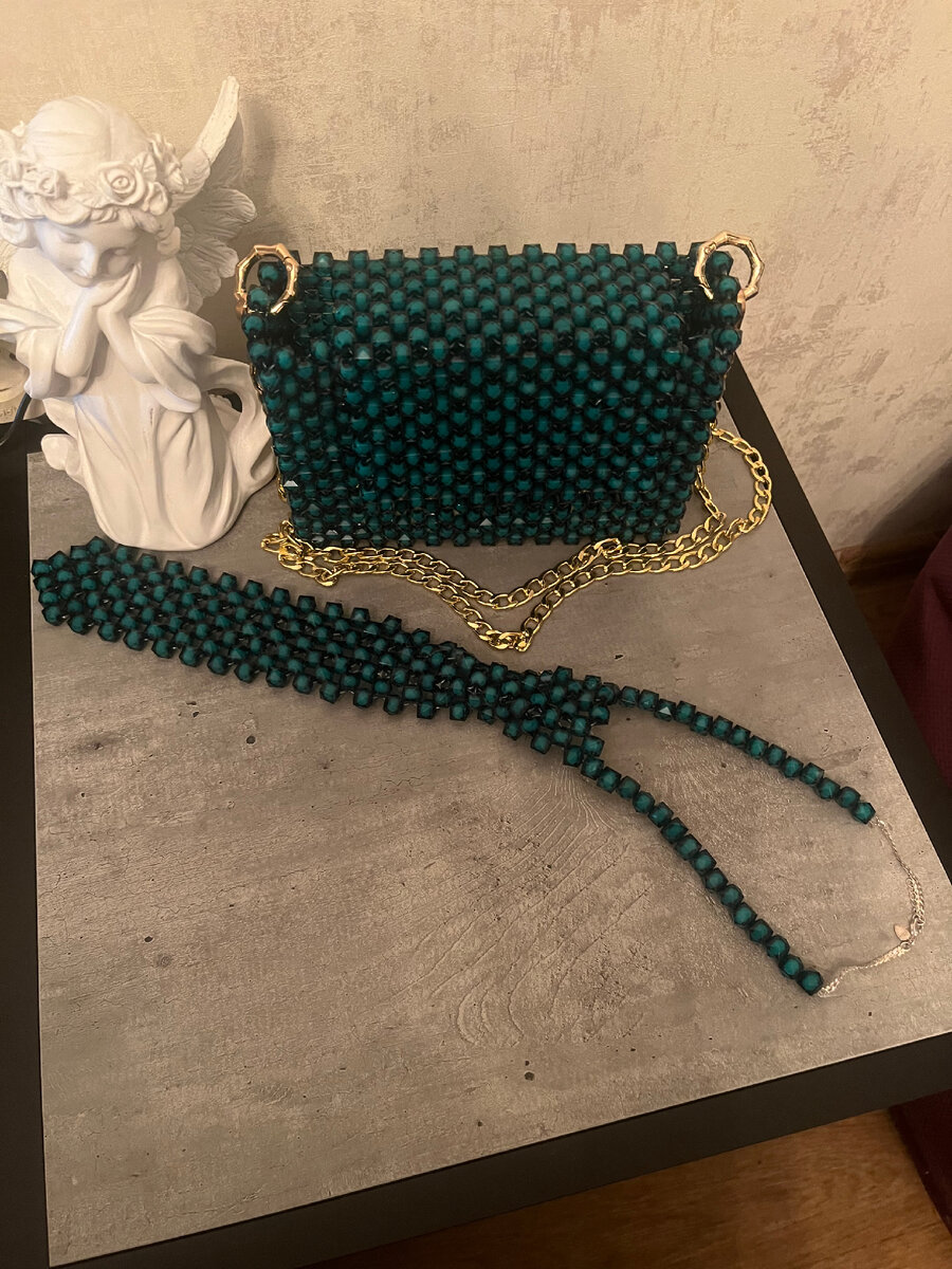 Все началось с того , что я захотела сделать подарки на Новый год своим руками …. И вот что на выходе получилось… Мой новогодний образ будет дополнять элегантный клач безумно красивого изумрудного цвета с переливами , а на оставшиеся бусины я исполнила галстук . Отличный образ , не находите ?!) Галстук будет бомбически сочетаться с рубашкой или платьем⚡️ Кстати данный цвет символ наступающего года Дракона 🥰 Р.S. Я решила не останавливаться на этом
