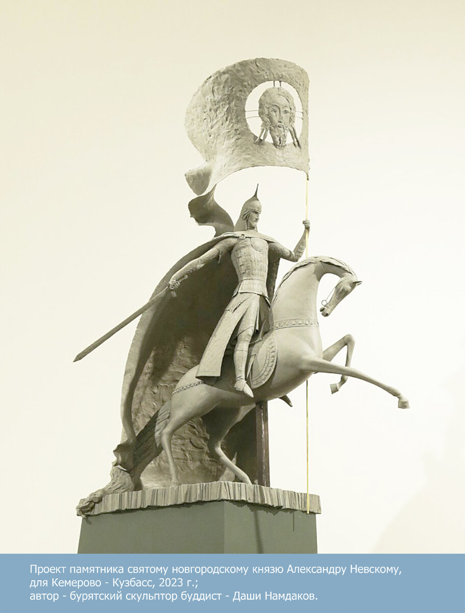 И словно, чтобы это антихристовое, прокатолическое глумление над русским православным святым князем сделать ещё более богохульным, право лепить идола Невского правительство Кузбасса отдало буддистскому идольщику, со славой шаманского язычника – Даши Намдакову, который в своём проекте превратил Александра Невского в мультяшного героя, - то ли из корейского, то ли из японского мультфильма!