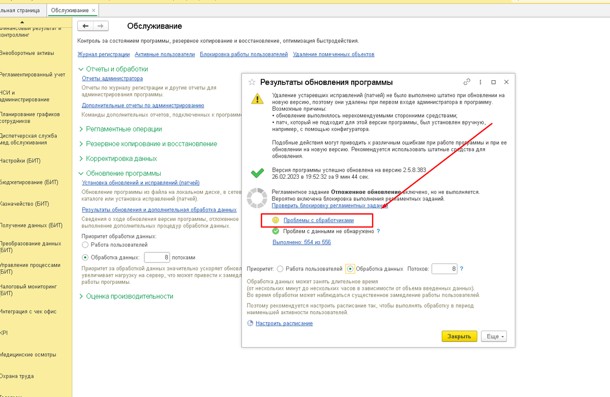 Краткая история друзья. Как-то пришлось обновлять 1с КА с 2.4 на 2.5, и вроде все нормально прошло, все процедуры выполнились, расширения поправил под новый релиз все вроде бы хорошо было. Но через какое-то время стали поступать обращения от пользователей что при проведении документов списания с расчетного счета суммы в взаиморасчетах задваиваются, затраиваются итд. В общем сетовал на глюки в релизе, вроде случаев было немного, в целом все норм, проблема лечилась только пересозданием нового документа. Однако чисто случайно решил проверить еще раз все ли процедуры отложенного обновления прошли, и о ужас, не прошли 2 процедуры из более чем 450. Решение: после долгого "тыканья", прочтения статей, ковыряния в коде модулей обновления БСП, пришел к простому решению 1. НСИ и Администрирование -> Администрирование -> Обслуживание -> Результаты обновления и дополнительная обработка данных 2. нужно найти невыполненные процедуры как видим вот они зависшие процедуры, запомним их или запишем себе,