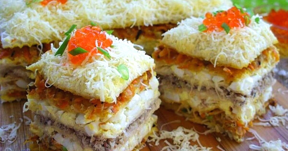 На носу сезон семейных праздников, а это значит, что пора обновлять меню. На новогоднем столе, я решила, в этом году не будет ни одного советского блюда. Оливье заменю теплым салатом с печенью, а «Мимозу» — карнавальным рулетом. От такой перестановки, поверьте, стол менее ярким не станет. Зато на лицах гостей гарантированно заиграет улыбка. Рыбная закуска на крекерах — тоже что-то новенькое! Вообще, нужно активно внедрять крекеры в праздничное меню. Это идеальная основа для любого канапе. Но лучше всего сочетать такое соленое печенье с консервированной рыбой. Сейчас я расскажу, какая комбинация гарантированно выстрелит! Что приготовить на аперитив: рыбная закуска на крекерах Для приготовления такой закуски запаситесь заранее упаковкой соленых крекеров. Это должно быть тонкое, но широкое печенье, которое удобно выкладывать в форму. Об остальных ингредиентах вы узнаете в списке ниже. Ингредиенты Приготовление ; ; ; Дайте закуске настояться в холоде минимум 2 часа. Но лучше вообще отправи