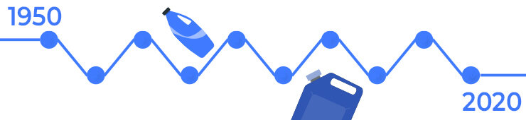 С 1950 по 2020 годы было произведено более 10,1 миллиардов тонн пластика по всем миру. Более 1/2 пластика было произведено за последние два десятилетия