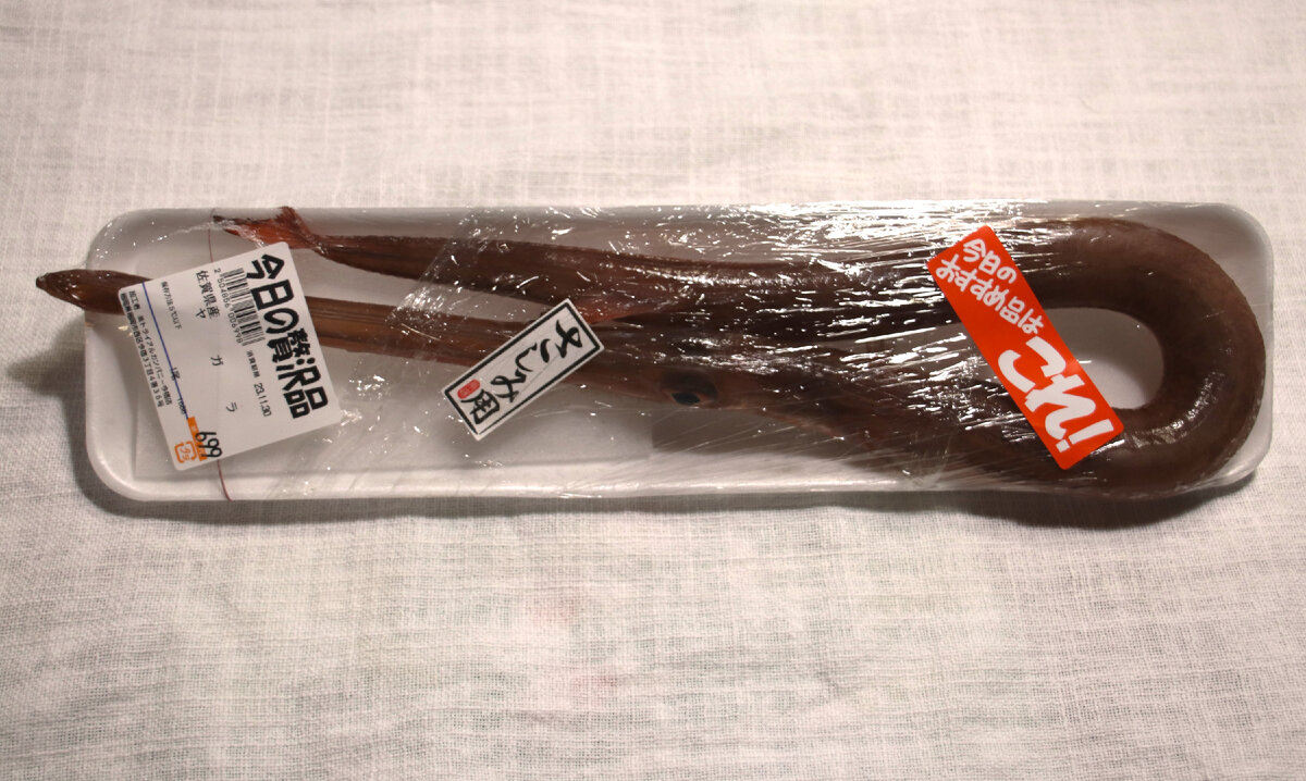 Покажу вам какую необычную редкую рыбу купил вчера Таро. Говорит, впервые увидел ее в продаже в супермаркете.