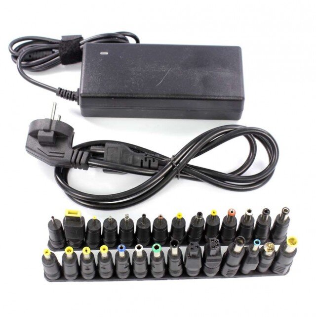 В инопланетном гипере подобрался приемлемый вариант: 90Вт, регулируемое напряжение выходного напряжения, 8 переходников, 999 рублей***