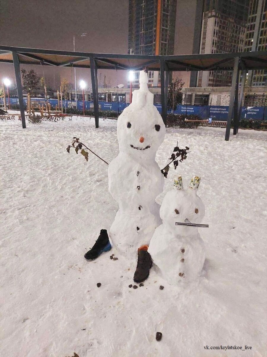 Выпавший в Москве снег стал поводом для творчества у горожан