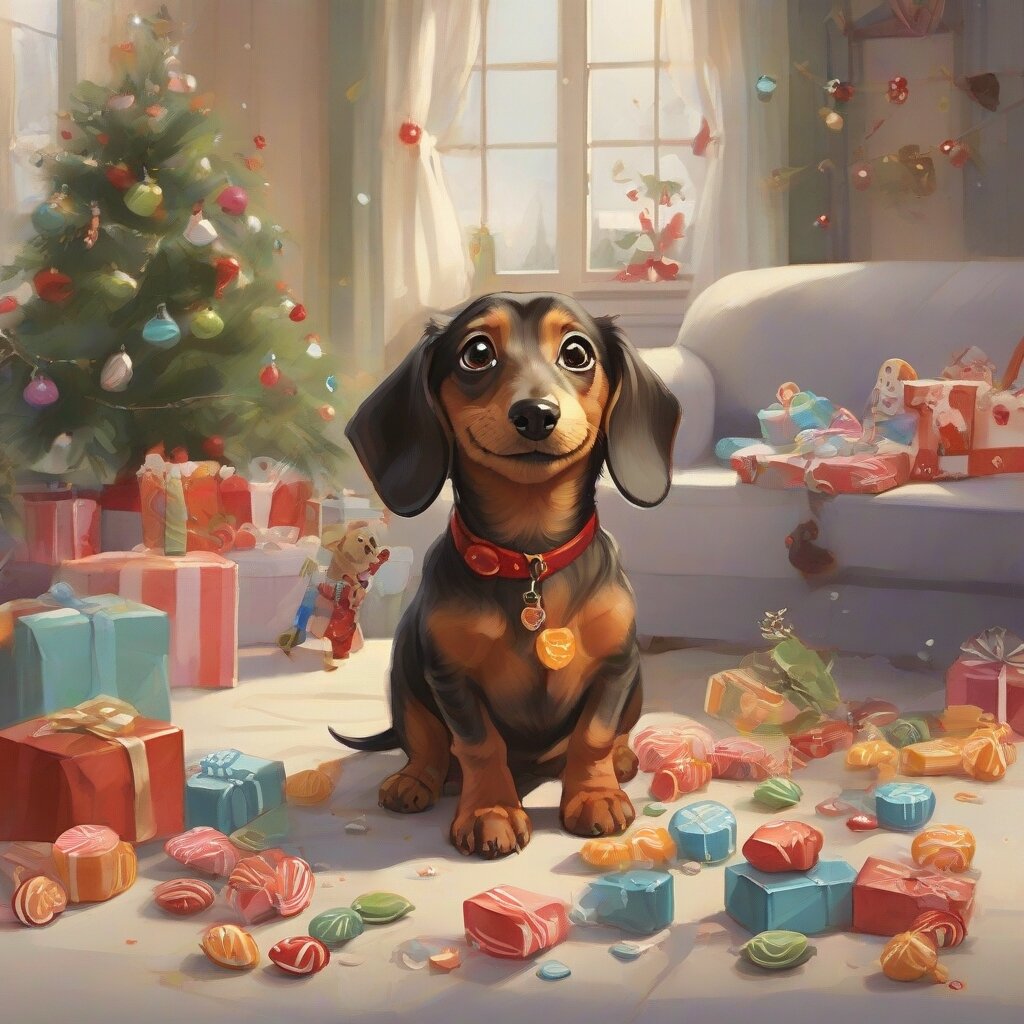 Под елкой в доме Сима сидела, в ее глазах сверкала лукавая улыбка. Это было новогоднее утро, и она, казалось, знала, что подарки для нее. Взгляд ее приковывался к многообещающим пакетам с конфетами. Старшая дочь, Анна, весело смеялась, устраиваясь на диване. "Сима, ты что, снова?" Сима, будучи порядочной дамой, быстро прикрыла свои глаза виноватым взглядом, словно спрашивая: "Что, что?". Но затем, не замедлив, она мастерски сбежала из комнаты, ухватив в зубы кусочек золотистой упаковки. "Она ведет себя, как настоящая конфетная ниндзя", сказал мой муж, отвлекаясь от телефона. Сима, будучи умной таксой, знала, что она не должна быть поймана за лапу. И тут она выглянула из-за дивана с выражением, которое кричало: "Поймай меня, если сможешь!" и мигом скрылась под кухонный стол. Анна вздохнула. "Похоже, мы снова будем искать конфеты по всему дому." Вечером того же дня Анна решила пойти гулять с подругами, оставив свой рюкзак в своей комнате. Сима, будучи мастером по подбору уголков и момент