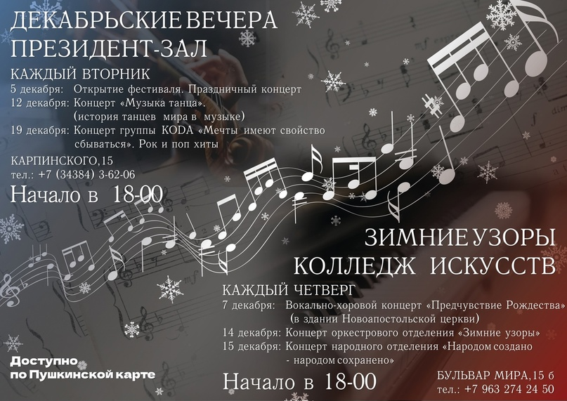Мы рады сообщить, что совсем скоро состоится традиционный музыкальный фестиваль «Декабрьские вечера»!