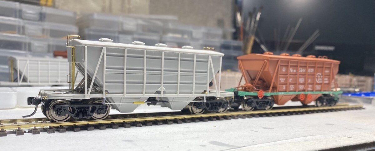 Так как набор от Karelian Models предполагал сборку модели третьей производственной серии, в конструкцию модели пришлось внести кое-какие изменения, которые были связаны с переносом части тормозного оборудования в межбункерное пространство и заменой V-образных торцевых стоек на четыре стойки меньшего размера с каждой стороны. Две из них попарно послужили направляющими для лестниц. Сделать это оказалось несложно.