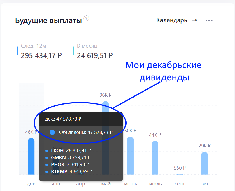 Почти 50 000 рублей дивидендов принесет мне мой портфель акций в декабре. Совет директоров четырёх компаний уже рекомендовали эти выплаты. Это самая большая месячная дивидендная доходность за все время моей инвестиционной деятельности!