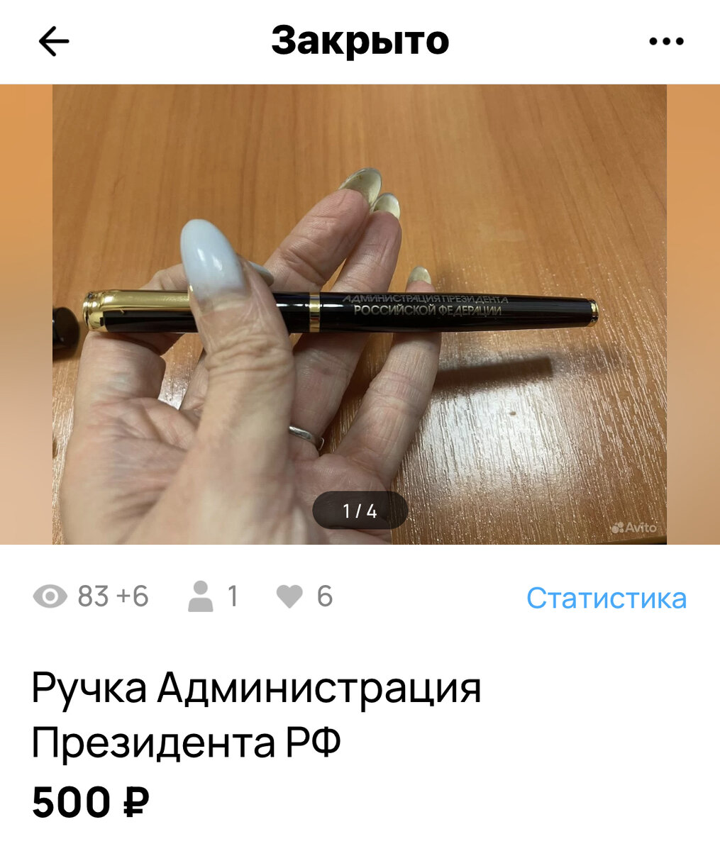 А я на этой неделе уже продала две брендированные ручки - одну за 500, другую за 700 рублей! Очень довольна! Продажа быстрая, покупатель приехал к работе, сразу же забрал, не стал даже торговаться! Ручки интересные, классные, одна с надписью "Администрация Президента РФ", другая - "Государственное Собрание Республики Башкортостан". Такие ручки всегда пользуются популярностью у коллекционеров. А мой покупатель и был коллекционер! Приятный такой интеллигентный мужчина в возрасте.