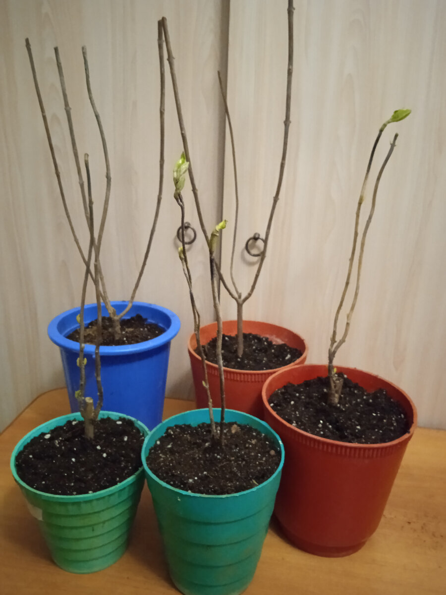 Укоренялись долго, но укоренились почти все, затем я их пересадила по стаканчикам и вот тут то они и стали погибать, тогда я не знала, что им нужно адаптироваться к открытому воздуху. Кое как мне удалось сохранить половину черенков.