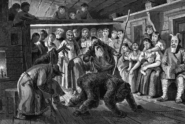 Святочные ряженые. Гравюра XIX в. из альманаха «Живописная Россия»