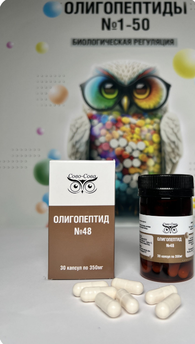 Пептидный пул комплекса №48 оптимизирует работу нейромедиаторной системы гамма-аминомасляной кислоты (ГАМК).