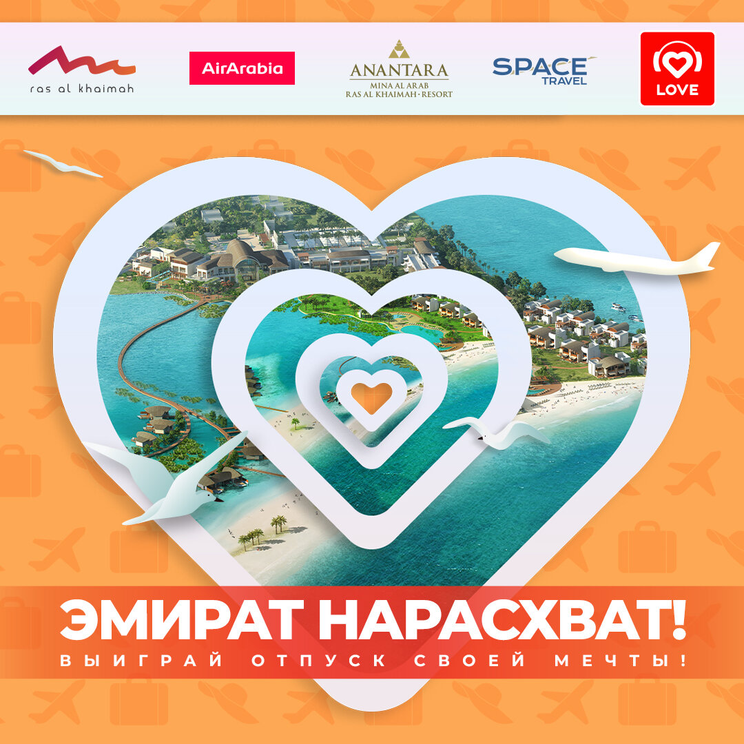 erid: LdtCKPfkM За окном серо и уныло, а душа требует солнца? Мы можем это устроить! Начиная с сегодняшнего дня в эфире Love Radio стартует совместный со Space Travel проект «ЭМИРАТ НАРАСХВАТ», в котором ты сможешь отхватить парочку билетов на жаркое побережье Арабского залива! Да-да, ты всё понял правильно! Радиостанция твоей мечты разыгрывает путешествие в ОАЭ, а если чуточку конкретнее – в эмират Рас-эль-Хайма! Победитель получит путёвку на двоих в отель Anantara Mina Al Arab Resort! Авиабилеты от компании AirArabia тоже прилагаются, так что уже можешь начинать гуглить и визуализировать свой улётный отпуск! Чтобы забрать заветный приз, внимательно слушай Love Radio и, как только услышишь сигнал ведущего, дозванивайся в студию. Тебе нужно будет «забронировать» одно из мест в нашем виртуальном лайнере – но только то, которое ещё не было занято другим слушателем. Справишься с задачей – станешь финалистом нашего проекта. Ну а дальше всё зависит от удачи, ведь определить главного претенд