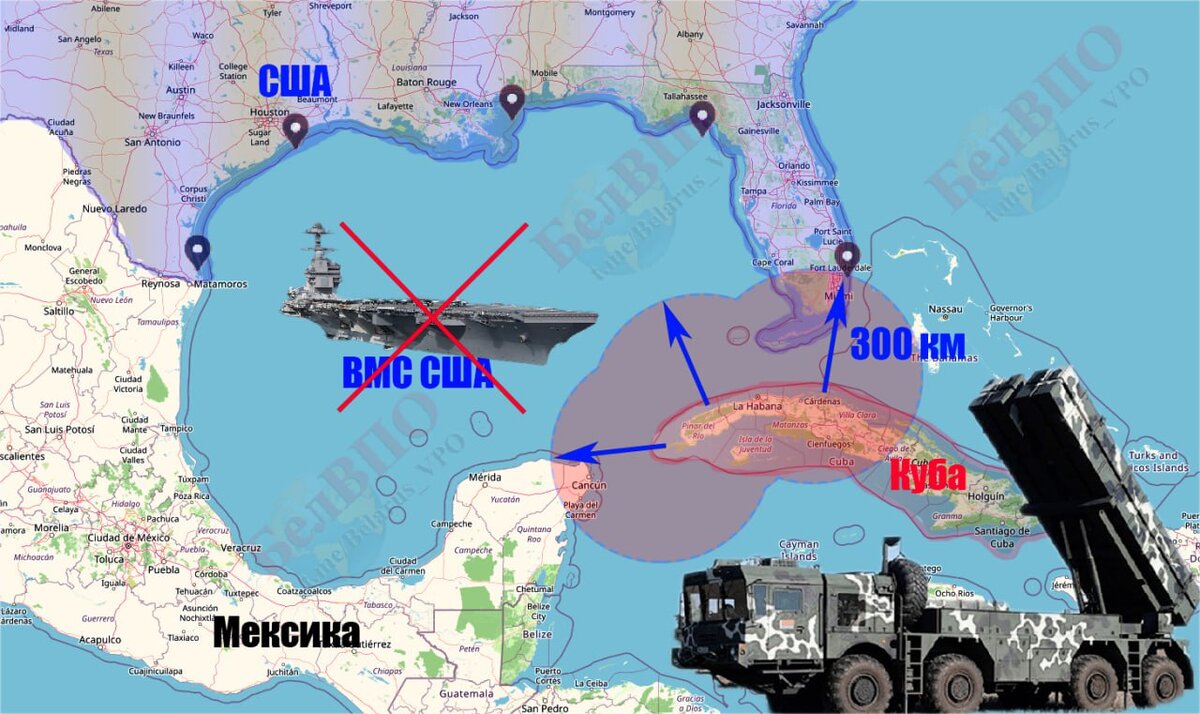 Помимо того, что наш «Полонез» полностью закроет Мексиканский залив для американского флота, дальность стрельбы поставит под угрозу существования американских баз во Флориде. Так, при расположении РСЗО на севере Кубы, под угрозу попадает: три базы береговой охраны США в Майами-Бич, штаб Южного командования минобороны США, корпус морской пехоты США, а так же объекты тыла.