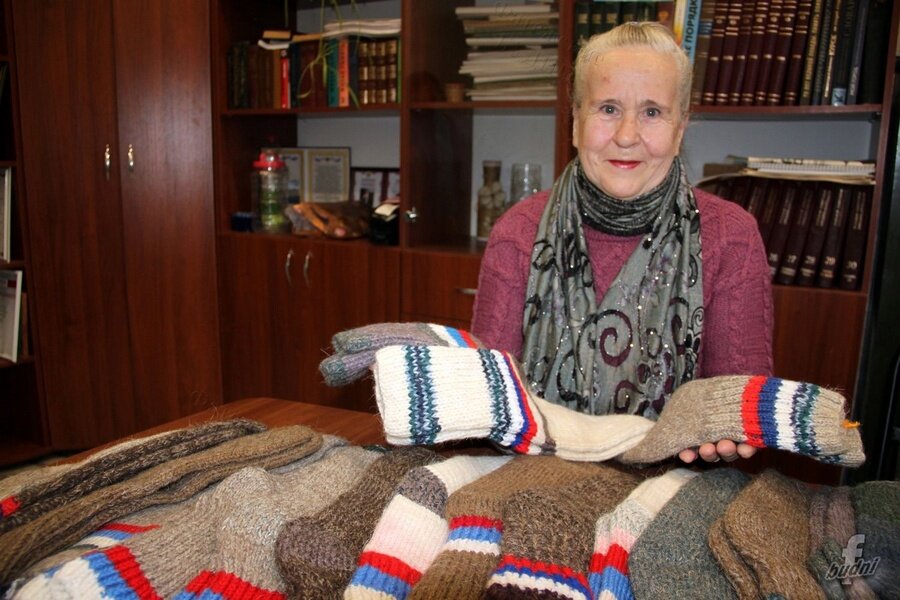 Антонина Косилова из города Фатежа сделала свой посильный вклад в поддержку участников специальной военной операции. Как пишет газета «Фатежские будни», Антонина Егоровна связала 24 пары утепленных носков для военнослужащих, участвующих в СВО. Пряжу женщине прислала дочка, а торгующая на местном рынке предпринимательница бесплатно поделилась с ней разноцветными нитками для узора на вещах в виде российского триколора. По словам Антонины Косиловой, она целую неделю работала с пяти часов утра до позднего вечера. Говорит, хочет, чтобы тепло было ребятам на фронте. Сотрудники редакции районной газеты передали носки волонтерам, которые отправят теплые вещи домашней вязки за «ленточку». Сергей Яшин, по материалам «Фатежские будни» Постоянный адрес новости на сайте «Друг для друга» ~ https://dddkursk.ru/lenta/2023/11/29/103552/. Новости Курска за ~ 29 ноября ~ ноябрь 2023 года.
