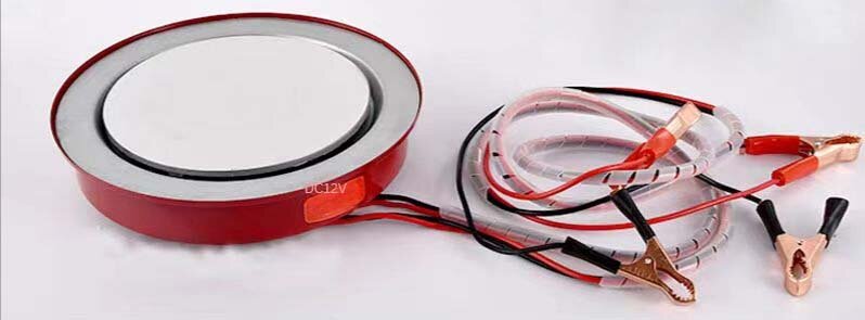 Внутри девайса стоит два нагревательных тэна мощностью приблизительно по 230 Вт. Один тэн, при питании от 12 вольт потребляет ток около 19 ампер. Использовать эту плитку с двумя тэнами на грузовике, с 24 вольтовым питанием, будет, пожалуй, нормально, а вот на легковом авто включать два тэна параллельно, это, пожалуй перебор. Ток под 40 ампер будет явно не на пользу аккумулятору и генератору легкового авт