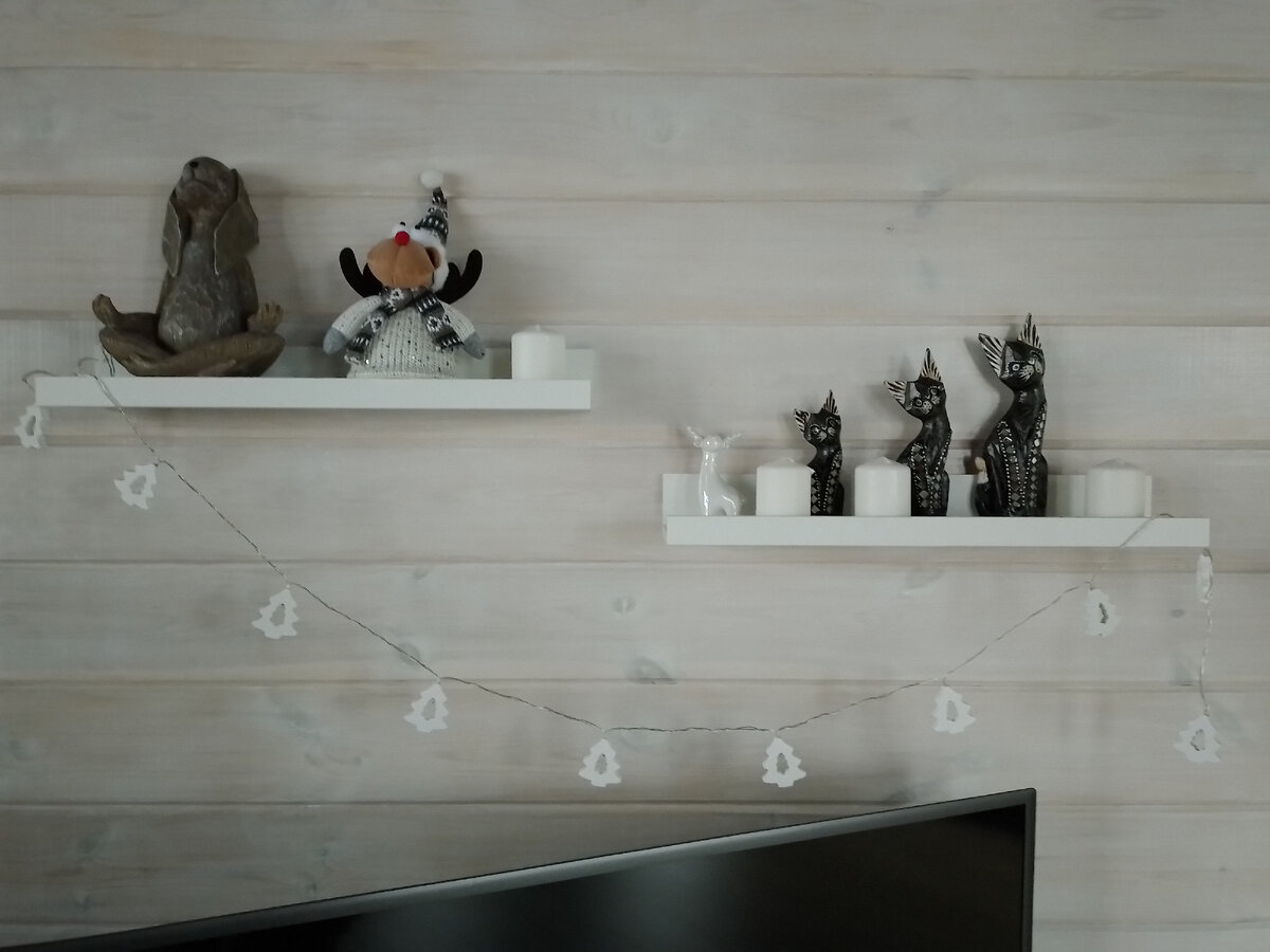 Доброго времени суток! Я так давно не была в магазинах "Фикс прайс". Не бегом мимоходом, а не спеша, рассматривая всё, чтобы не пропустить ничего интересного. И вот добралась. Муж поехал в город к стоматологу, а я с ним за компанию, сказала, что буду ждать его в ФП рядом. В конце года, тем более по понедельникам, в ФП обычно пустовато на полках, но я без покупок не вышла) В прошлом году, пока собиралась купить гирлянду с деревянными фигурками, их уже раскупили. В этом были 3 вида, я выбрала с елочками (она на батарейках). Цена 174,5 рубля. Декор на полочках буду менять - еще не занимались украшением дома. Лосика в шапке мне подарила дочка на День матери. Он светится. Продается в "Пятерочке". На днях занималась генеральной уборкой в кухне. Купила 2 новых емкости в выдвижной ящик для насадок к мясорубке и миксера с насадками. Наконец-то во всех шкафчиках кухни порядок) Цена органайзера 149 рублей. Ведерко для стирального порошка стоит 124 рубля. Давно хотела какую-то подходящую емкость