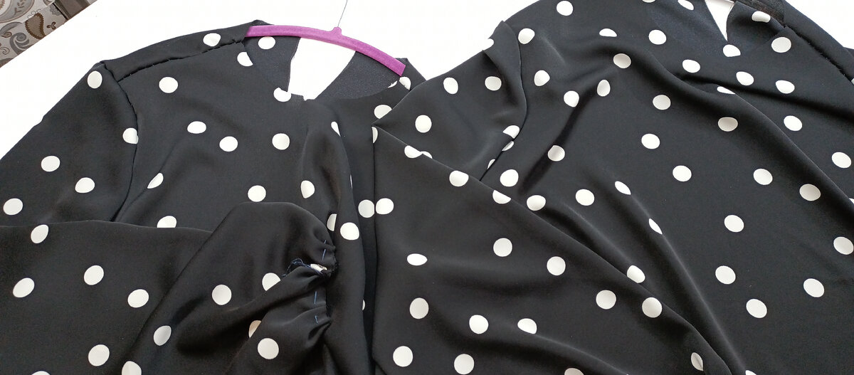 Изготовила две одинаковые блузки маме и дочке. Блузки простые,сзади щель с навесной петелькой. Рукава расширены книзу,планировали собрать,а потом и передумали. Изюминка-съёмные воротники.