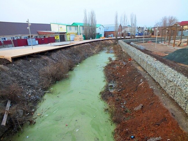 В пятницу работы по благоустройству набережной должны были завершиться. Жители обеспокоены видами, которые открываются на территорию набережной: зеленая жижа вместо реки, частичное ограждение моста, покосившиеся дорожные знаки и отсутствие ограждения вдоль реки. В пятницу, 24 ноября, на сайте госзакупок в контракте по благоустройству набережной реки Песчанка в Соль-Илецке появились документы о приемке работ, подписанные только подрядчиком. Дополнительных соглашений о продлении сроков на сайте нет. Таким образом, подряд можно считать завершенным. Сегодня на площадке уже не видно техники или строителей, но объект пока не готов принимать посетителей: архитектурные формы и лавочки еще замотаны в пленку, повсюду можно разглядеть строительный мусор, а на деревянной набережной остались пустые проемы, в которые легко можно угодить, если сверху припорошит снегом. Жители в социальных сетях продолжают высказывают беспокойство за новый объект благоустройства. Еще на старте работ сол