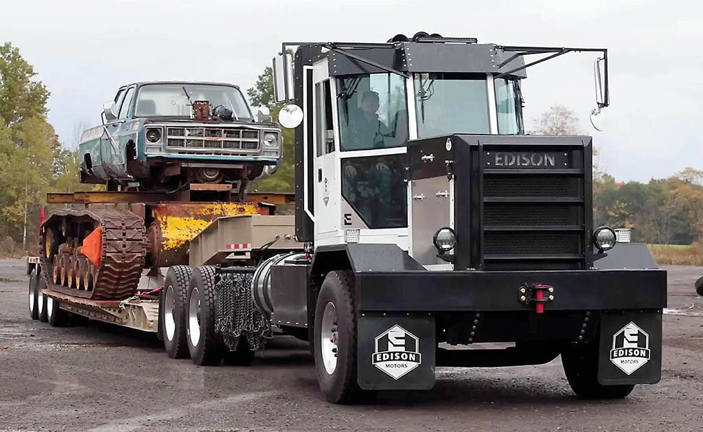 Любопытная история про канадских дальнобойщиков, которые жили в лесу и молились колесу. Ой, да нет, они так прониклись экологическими идеями, что собрали в своем гараже лесовоз с гибридным приводом. Шесть лет назад, а точнее 16 ноября 2017 года, некто Илон Маск, которого некоторые блохеры по большому недоразумению называют гением, провел масштабнейшую пиар-акцию, где презентовал электрический седельный тягач Tesla Semi. Один канадский провинциал внимательно слушал этого «электрического» гуру. На него реально подействовала магия Илоны, и он с дуру внес частичную предоплату за тягач Tesla Semi. Время шло, но по поводу грузовика ему так никто и не позвонил.. На четвертом году ожидания у дальнобойщика появилась идея, сделать все самостоятельно, и в соответствии со всей спецификой, связанной с перевозкой древесины в условиях бездорожья и сложной топографией. Тем более, что долгожданная Tesla вряд ли подошла бы для повседневной тяжелой работы лесовоза. После нескольких встреч со старым знако