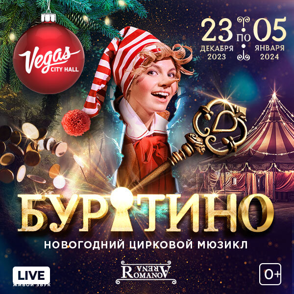 Профессиональные артисты и актеры ведущих театров страны расскажут всеми любимую историю о деревянном мальчике. Елка в Vegas City Hall в Москве – это дизайнерские костюмы, украшения испецэффекты под аккомпанемент авторской музыки, написанной специально для этого события. Эта елка понравится не только детям, но и их родителям.