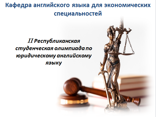 23 ноября 2023 года кафедра английского языка для экономических специальностей провела I тур II Республиканской студенческой олимпиады по юридическому английскому языку. Олимпиада была организована и проведена в дистанционном формате.