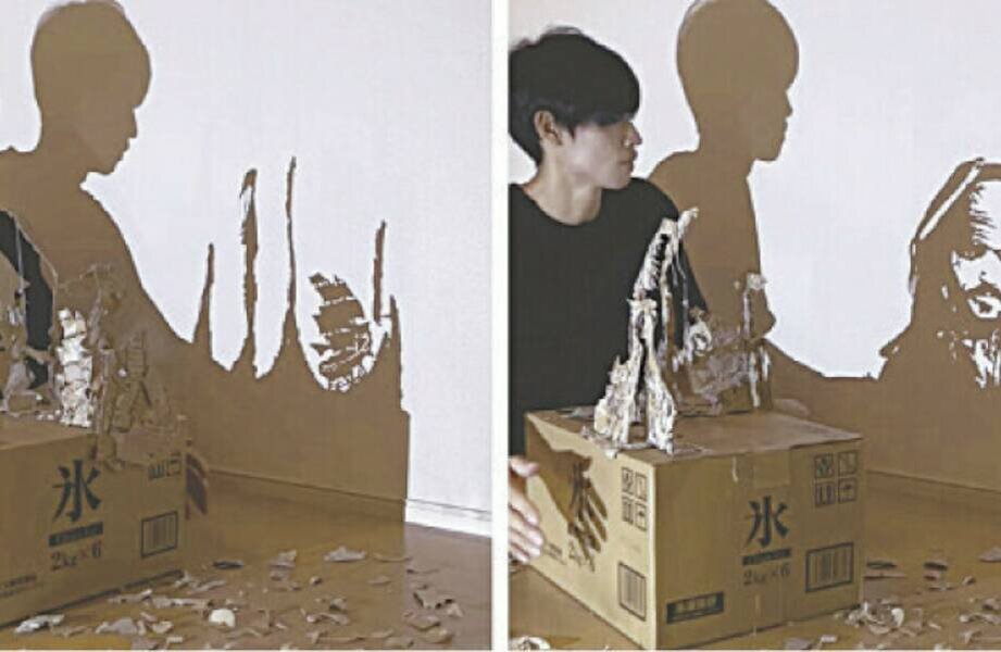 У талантливого художника обычная коробка от телевизора превращается в теневое искусство. Куронуши (Kuronushi) — художник из Японии, который увлекается теневым театром. Он склеивает кусочки картона, превращая их в удивительный сюжет. Из обычной коробки он может сделать портрет Гарри Поттера, который под другим углом превратится в сцену с летящим на метле волшебником. Куронуши увлекся теневым искусством совершенно случайно. Однажды на прогулке он увидел, как тень его дочери приобрела необычные очертания (кстати, у нас есть забавная подборка, в которой собраны самые странные тени). Его фантазия разыгралась, и, вернувшись домой, он решил пофантазировать с тенью, добавив ей деталей. В ход пошли ножницы, обычная коробка и клеевой пистолет. Очень скоро его работы стали сложнее и изящней, и теперь Куронуши создает полноценные сюжеты. На первый взгляд на коробке приклеены сотни кусков картона в хаотичном порядке, но стоит навести на них источник света, как происходит волшебство. Эти хаотичные р
