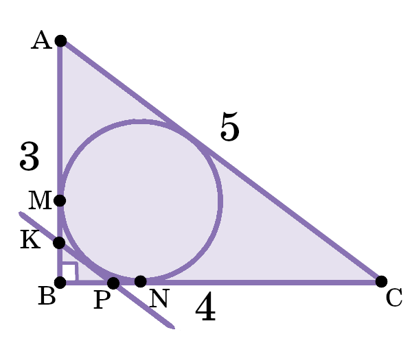- По теореме расстояния от вершины угла до точек касания с окружностью P△KBP = BM + BN. BM = BN = (4+3-5)/2 = 1. P△KBP = 1+1 = 2.