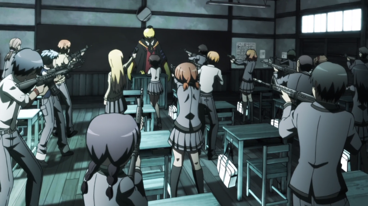 Вот зачем ученику может понадобиться нападать на учителя? За плохую оценку? Может к доске вызвал к доске не вовремя? Нет, в нашем случае ученикам нужно убить учителя для спасения всего человечество. Он монстр, который уничтожил Луну и объявил, что если до его никто не убьёт, то он сотрёт в порошок и Землю. Смогут ли юные ученики справиться с этим чудищем? Обзор аниме: Класс убийц Поясню за сюжет На момент начала сюжета учитель Коро, так зовут того монстра, уже некоторое время обучает самый отстающий класс Е. В этот класс скидываются те дети, которые полностью не соответствуют общеобразовательным стандартам. Как он туда попал? Да всё просто, он поставил правительству всех стран условие — он будет учить детей из этого класса, и только эти дети будут иметь возможность покушаться на его жизнь. Главы стран согласились потому что других методов для его убийства у них не был. Вот и получается, что главная задача учеников, это укокошить своего учителя. Мой опыт просмотра Да, тайтл не про решен
