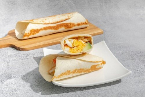 ✔️Выложить на лаваш курицу, овощи и яйцо.