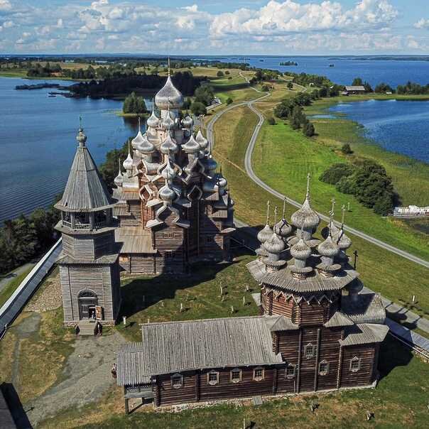 Кижский погост - архитектурный ансамбль построенное в 17 веке на острове Кижи, расположенном на Онежском озере Погост представляет собой две большие деревянные церкви (22-купольная Преображенская церковь и 9-купольная Покровская церковь) и колокольня. Погост славится своей красотой и долговечностью, несмотря на то, что построен исключительно из дерева. В 1990 году он был включен в список объектов всемирного наследия ЮНЕСКО, а в 1993 году внесен в список объектов культурного наследия России. 5 удивительных фактов о Кижах 1. Нестор - мастер, построивший Преображенскую церковь. Окончив строительство он, по легенде, выбросил топор в озеро и сказал «николи не было, николи не будет» другого такого же храма. 2. Церковь Преображения Господня - главная гордость погоста. Построена в начале XVIII века . Церковь имеет 22 главы. По легенде в 37-метровом здании не использовано ни одного гвоздя. Гвозди все же есть, они в куполах. 3. Покровская церковь - вторая по красоте на острове. Она считается з