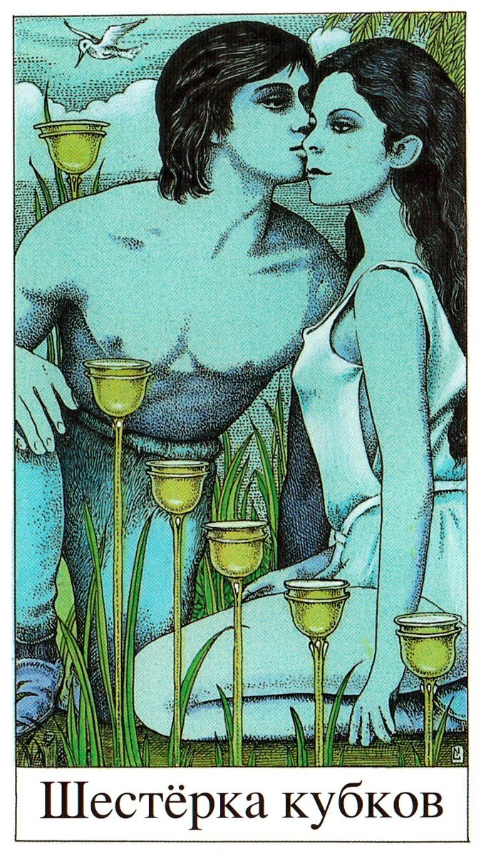 Шестерка кубков может указывать на пересмотр старых отношений или обращение к людям из прошлого. Речь может идти не обязательно о возобновлении прошлого, а скорее о поиске близости и комфорта в прошлых связях.