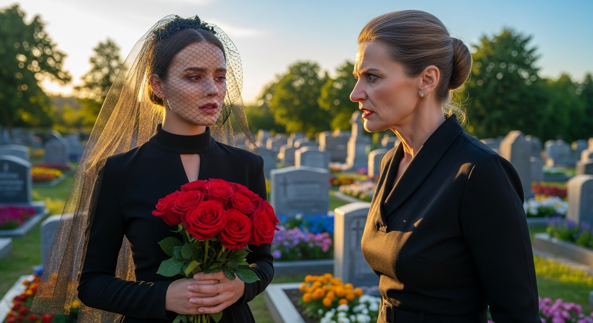 — Бесстыдница! — почти зарычала свекровь в черном, ее пальцы впились в плечо невестки. — Ты как на праздник пришла! Стыд-то хоть имей!