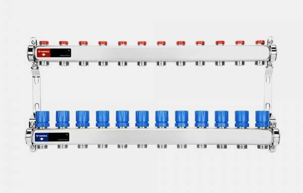 В наши дни система отопления – это не печь посреди избы. Современная отопительная система – это большое количество потребителей тепловой энергии, от стандартных радиаторов, до целых систем (теплый пол), дополнительных помещений (баня, гараж, зимний сад), этажей, бойлеров косвенного нагрева и т. д., требующих бесперебойной подачи теплоносителя для эффективной работы. Решением вопроса бесперебойной поставки и занимается такой элемент системы отопления, как распределительный коллектор. Устройство разделяет общий поток теплоносителя на отдельные направления к каждому потребителю или контуру. В коллекторных системах распределительные коллекторы используются парами, один – раздающий, другой собирающий потоки охлажденного теплоносителя в единый поток, направляемый к агрегату для нагрева. А можно без распределительного коллектора? Как говорил Михаил Михайлович Жванецкий: «Можно, если вас не интересует конечный результат!»