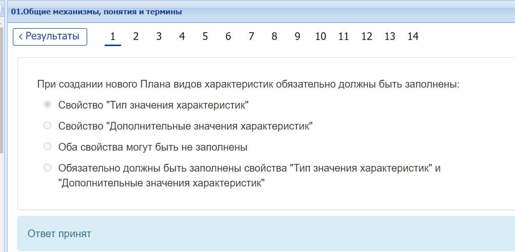 Вопросы ниже. Жирным шрифтом выбранный мною вариант ответа. По Итогу тест сдан на 92%. Один из ответов неверен. 1. При создании нового Плана видов характеристик обязательно должны быть заполнены: 2. Для объектов конфигурации "Бизнес-процесс" и "Задача" выберите верное утверждение: 3. Что произойдет, если удалить предопределенный элемент в конфигураторе 4. Какими данными и с какой целью обеспечивает пользователя "Граница последовательности документов"? 5. В какое значение можно установить свойство "Серии кодов" объекта конфигурации "Справочник"? 6. Для запрета режима непосредственного удаления предопределенных элементов справочника пользователем необходимо... 7. У объекта "Табличная часть" в качестве подчиненных объектов могут быть... 8. Объект конфигурации Константа… 9. Какую конфигурацию можно изменять интерактивно в конфигураторе? 10. Выберите верный набор ассоциаций "Сущность системы" - "тип файла": 11. Объект конфигурации Отчет… 12. Параметры сеанса инициируются: 13. Для каких ц