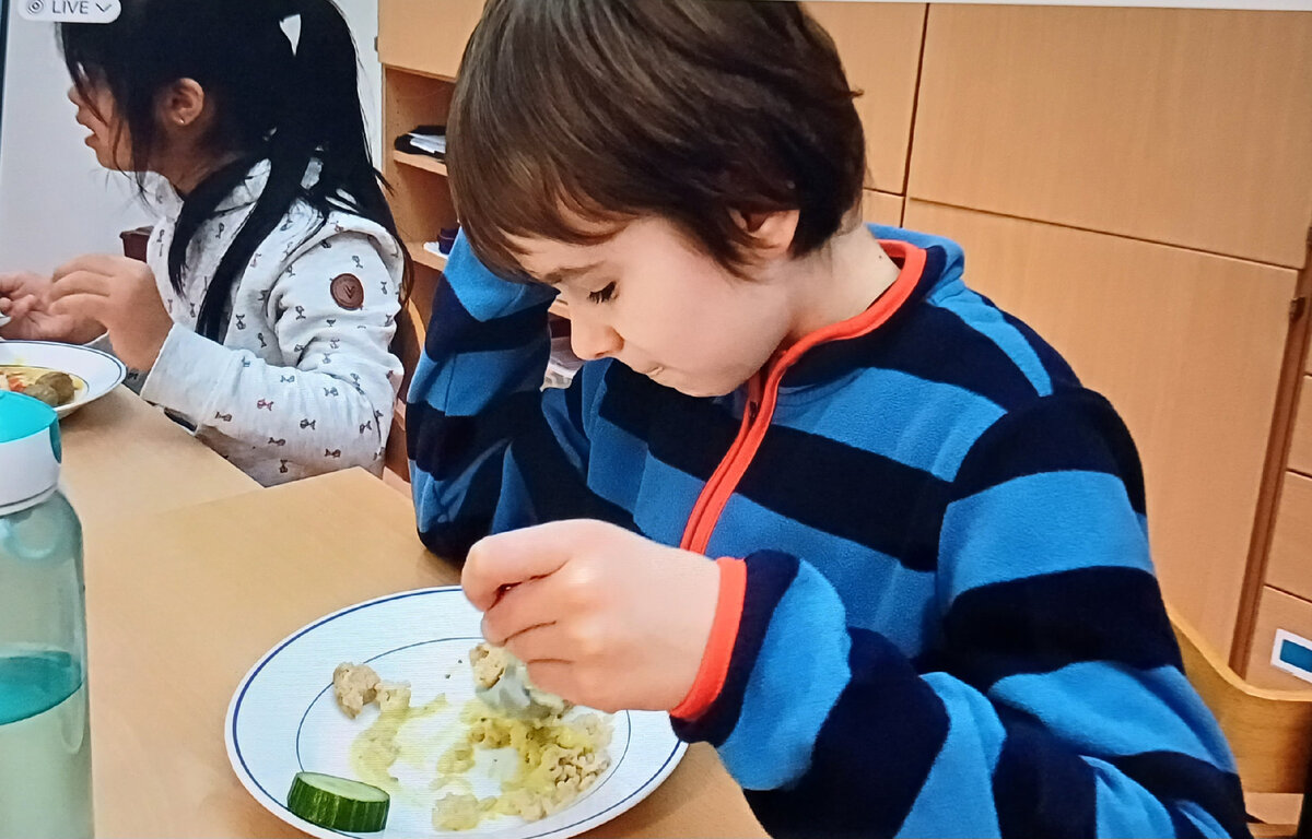 Буквально месяц назад я рассказывала о том, как у Антошки обстоят дела с приёмом пищи в школе и вот кажется можно порадоваться хорошим новостям! Вот статья, которая на эту тему выходила: Кто впервые на моём канале: Антошке 10 лет. Он посещает коррекционную школу, пятый класс. У Антоши аутизм-РДА, он не говорит. Совсем. И убегает. Сложности с приёмом пищи и в садике и в школе были несколько лет, при этом были конечно короткие хорошие фазы или дни, когда прям - вау, раз и хорошо там покушал, да мы были даже рады и тому, что хоть что-то покушать мог там. И воооот! Есть позитивные изменения! При этом стал кушать там ежедневно, а не от редкого случая к случаю. То есть появилась регулярность. Тьфу, тьфу, тьфу. Уже боимся и сглазить. Стало нам интересно, а что же повлиять могло? Тьютор- помощница в школе делает иногда фото, как Антошка там обедает или завтракает. И я обратила внимание, что с Антошей в течении нескольких недель рядом сидит за столом одна и та же девоч