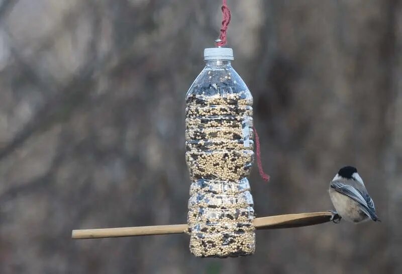 Кормушки для птиц не только привлекают местных пернатых в ваш сад, чтобы вы могли наблюдать за ними вблизи, но и предоставляют им неоценимый источник пищи, особенно во время года, когда ресурсы могут быть ограничены. Виды птиц меняются в течение года, но всегда найдутся те, кто ищет вкусный перекус. Кормушка для птиц - это отличный способ познакомиться с разными видами и наблюдать за их поведением. Как сделать кормушку для птиц из пластиковой бутылки Разные типы корма и кормушек привлекают разные виды птиц. Домашняя кормушка, - это быстрая и недорогая семенная кормушка, которая может привлекать широкий спектр обычных видов птиц. Прежде чем начать Будьте осторожны при разрезании пластиковых бутылок. Острые края пластика могут причинить порезы как вам, так и птицам, которых вы кормите. Перья могут застрять на острых краях, поэтому старайтесь делать отверстия в бутылке как можно более гладкими. Вам понадобятся две палочки в качестве жердочек. Они должны быть шире бутылки примерно на 10 с