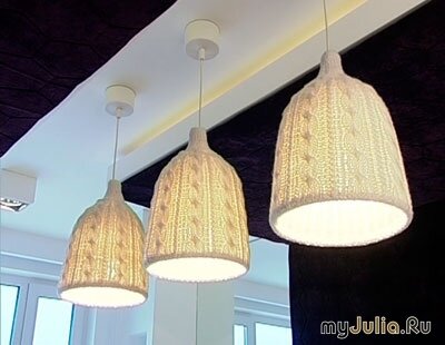 Дача зимой – это особое наслаждение. За окном кружатся снежинки, белоснежно-голубая поляна слепит глаза. Наступает пора волшебных преображений дачного дома. И для этого не нужно покупать новую мебель, тратить деньги. Сменили диванные подушки – появляется новый акцент. Или, например, преобразили абажур. Вязаный абажур! Такой предмет украсит и уютно освежит любую комнату. Абажуру не обязательно быть ярким, чтобы привлечь к себе внимание и поднять нам настроение. Главную работу выполнит лампа. Представьте, как ее мягкий, приглушенный свет струится через нити абажура, как через сито. Петельки и узоры прекрасно справляются со своей задачей! Абажур появился на свет более двухсот лет назад. Вроде бы, это просто колпак, который одевается на лампу или светильник, но как красиво он выглядит в любом интерьере. А для зимней дачи, вязаный, более подходящий вариант. Связать абажур можно из любой пряжи, любым узором. Спицами или крючком. Или комбинировать техники. Остатки пряжи тоже сгодятся, работа