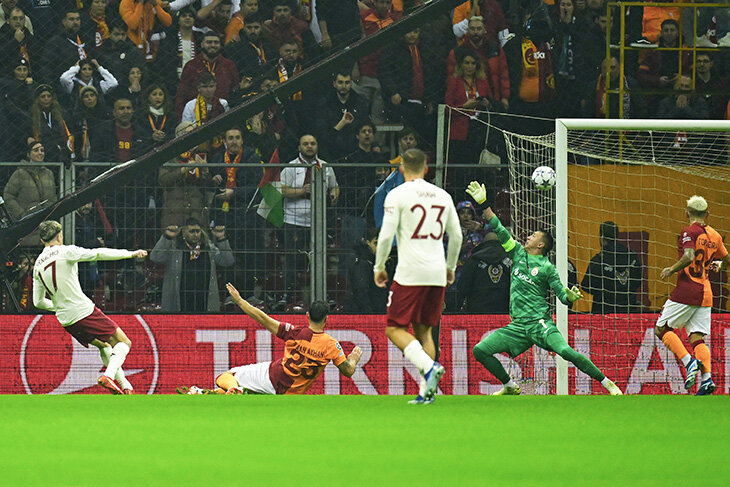 В него тут же швырнули бутылку. «Манчестер Юнайтед» упустил победу над «Галатасараем» − 3:3, хотя начинал шикарно. К 18-й минуте уже вели в два мяча. Первый забил герой выходных Алехандро Гарначо. Его забыли на левом углу штрафной, он дождался паса Бруну Фернандеша и с левой вколотил в девятку Фернандо Муслеры. Бум! После двух важных голов в двух матчах аргентинец поверил в свое бессмертие. Отпраздновал обращением к трибунам: тише-тише. А еще показал, что не слышит свиста в свой адрес. Успокаивать Гарначо (и оттягивать подальше от бурлящей ярости) по-капитански пришел Бруну. Включился и главный судья Хосе Мария Санчес Мартинес: сначала поговорил с Фернандешем. Затем и с самим Гарначо: показал, что не нужно провоцировать местных фанов. Стамбульские трибуны создавали ад. Фаны у «Галатасарая» очень буйные Предупреждение Санчеса Мартинеса возникло не на пустом месте − фаны «Галатасарая» перед матчем вывесили огромные баннеры «Добро пожаловать в ад». Как в 1993-м. Ультрас «Галатасарая» вооб