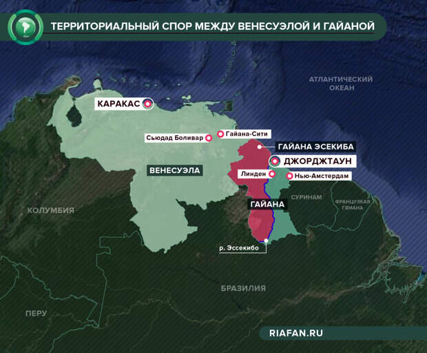 Сегодня может начаться (а скорее всего УЖЕ началась) новая война - в Латинской Америке. Там граничат друг с другом две страны: Венесуэла (испаноязычная,социалистическая диктатура, союзная России, богатая ресурсами но при этом нищая, по площади как полторы Украины вместе взятые - если считать в границах 1991 года) - и Гайана (англоязычная, малонаселëнная, по площади примерно равная Белоруссии) богатая ресурсами, относительно зажиточная, союзная Америке, Англии и Бразилии). Венесуэла претендует на ту часть Гайаны, которая расположена к западу от реки Эссекибо - а это примерно 65 процентов всей территории страны. Однако никогда раньше, дело не доходило до серьëзных боестолкновений. И вдруг сейчас, друг России Николас Мадуро (венесуэльский диктатор) словно с цепи сорвался. Венесуэла сосредоточила на границе с Гайаной очень серьëзные силы - и, по некоторым сведениям, уже перешла к боевым действиям. В свою очередь, Бразилия (у границ которой всë это происходит) привела свои войска в полную