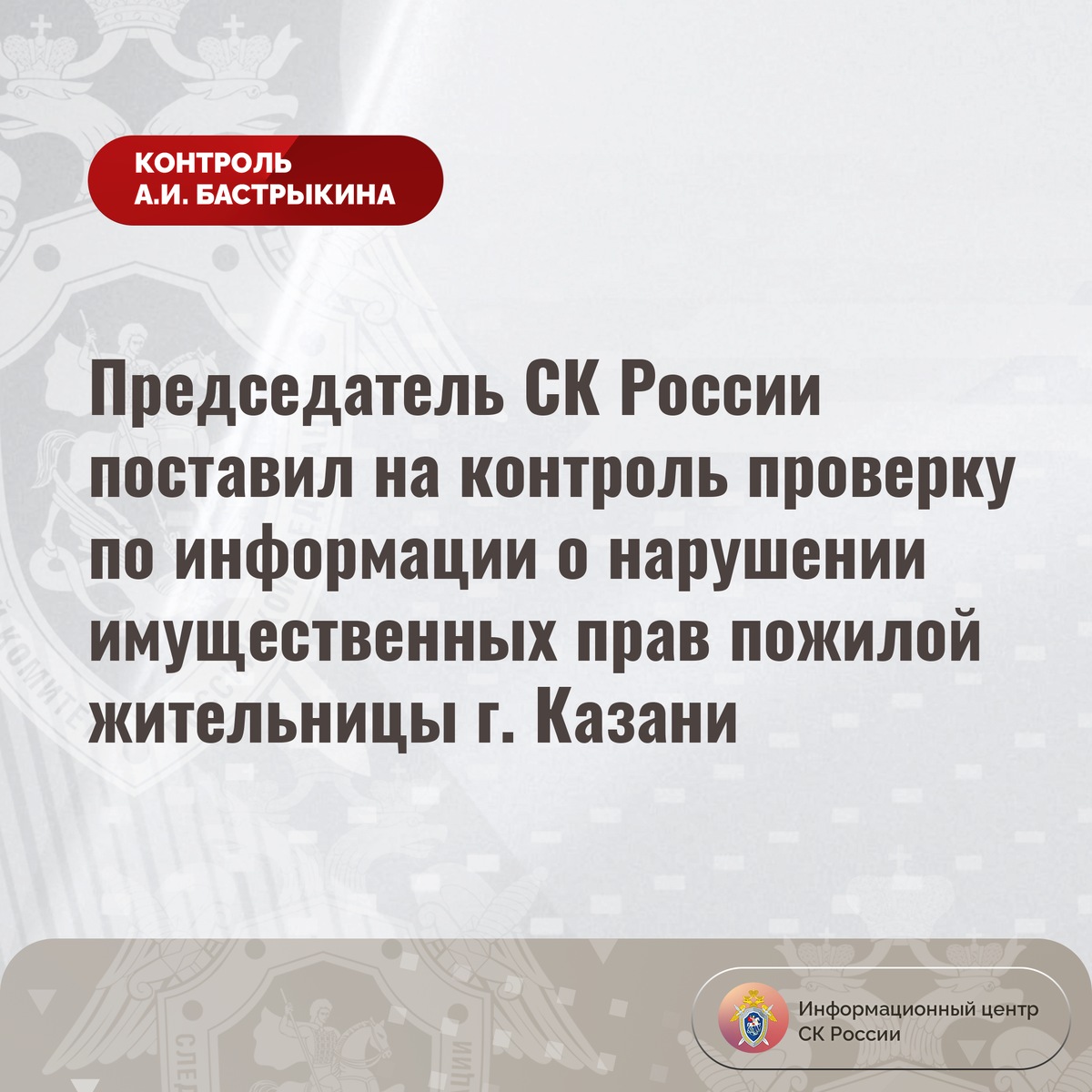 Председатель СК России поставил на контроль проверку по информации о нарушении имущественных прав пожилой жительницы г. Казани