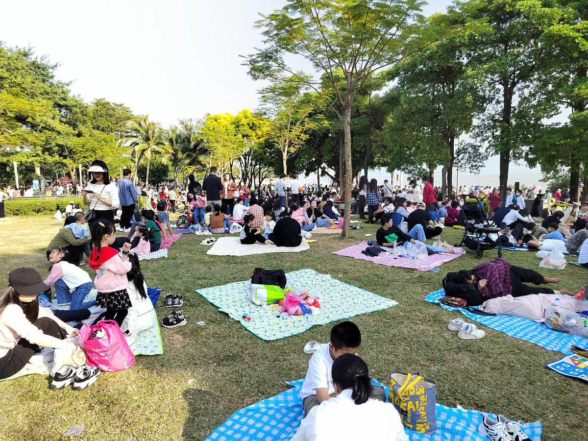 Хочу ещё немного рассказать о прогулке в тот день, когда мы посетили холм имени Дэн Сяо Пиня. В тот день было много всего интересного. Мы наконец прокатились на китайском метро и доехали до китайского моря. Именно там мы ощутили всю плотность китайского населения в 25-миллионном городе. Люди приходят на берег, не могу назвать его пляжем, чтобы полежать в братской темноте на газоне и подышать табачным дымом, курят тут все. Кайфа я от посещения этого "моря" совсем не ощутил, не турецкий берег все-таки. Зато уткам купаться нравится. В метро на нас смотрели, как мы в зоопарке на обезьянок. Маленькие дети даже пальцем иногда показывали. Прилетели аборигены в развитию страну, так сказать.... Место просторное, станции большие. Говорят, в час пик тут не протолкнуться. Нам повезло избежать этого счастья. Все стоят со смартфонами. В этот день мы ещё были около большого торгового центра. Знаете, очень необычно, когда машины и смартфон продают в одном салоне. Гоганская мега корпорация Huawei