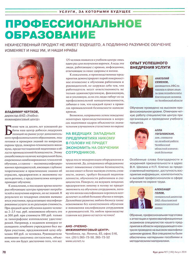 Более чем за десять* лет успешной работы наш центр добился лидерских позиций на рынке услуг дополнительного профессионального образования, подготовки и проверки знаний по вопросам охраны труда, пожарно-технического минимума, предаттестационной подготовки в области промышленной безопасности. Этому способствовало наличие материальной базы, современных комбинированных технологий обучения, а главное – высококвалифицированных преподавателей, имеющих глубокие теоретические знания об отраслях, предприятиях и экономике нашего региона, с представителями которого проходит обучение. НЕКАЧЕСТВЕННЫЙ ПРОДУКТ НЕ ИМЕЕТ БУДУЩЕГО, А ПОДЛИННО РАЗУМНОЕ ОБУЧЕНИЕ ИЗМЕНЯЕТ И НАШ УМ, И НАШИ НРАВЫ (Мишель Эйкем де Монтень) К сожалению, в последнее время некоторые обучающие центры приучают потребителей к “получению корочек”, но не знаний. В результате из тендерных списков вымываются участники, предлагающие квалифицированные услуги за их реальную стоимость. По средней цене обучения одного человека 2-2,5 тыс.руб